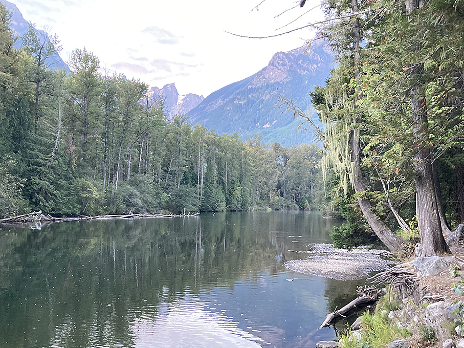 We stopped off at the Fisheries Pool campsite on the Atnarko River where there are usually many salmon spawning and bears there to eat them.